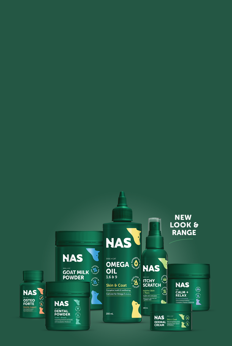 Help your pet find their calm! NAS Calm & Relax is a gentle, natural formula crafted to support relaxation, emotional balance, and digestive wellbeing for a happier, more settled pet.